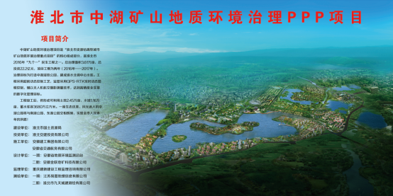 中湖治理采用PPP融資模式,由安徽建工集團與淮北市建投控股集團有限公司合作建設。采用工程治理和生態修復等措施,對采煤沉陷區實施適度超前式治理,被國家財政部、國土資源部等部委列為國家第三批PPP示范工程,在全國礦山地質環境治理工作中具有引導示范效應。