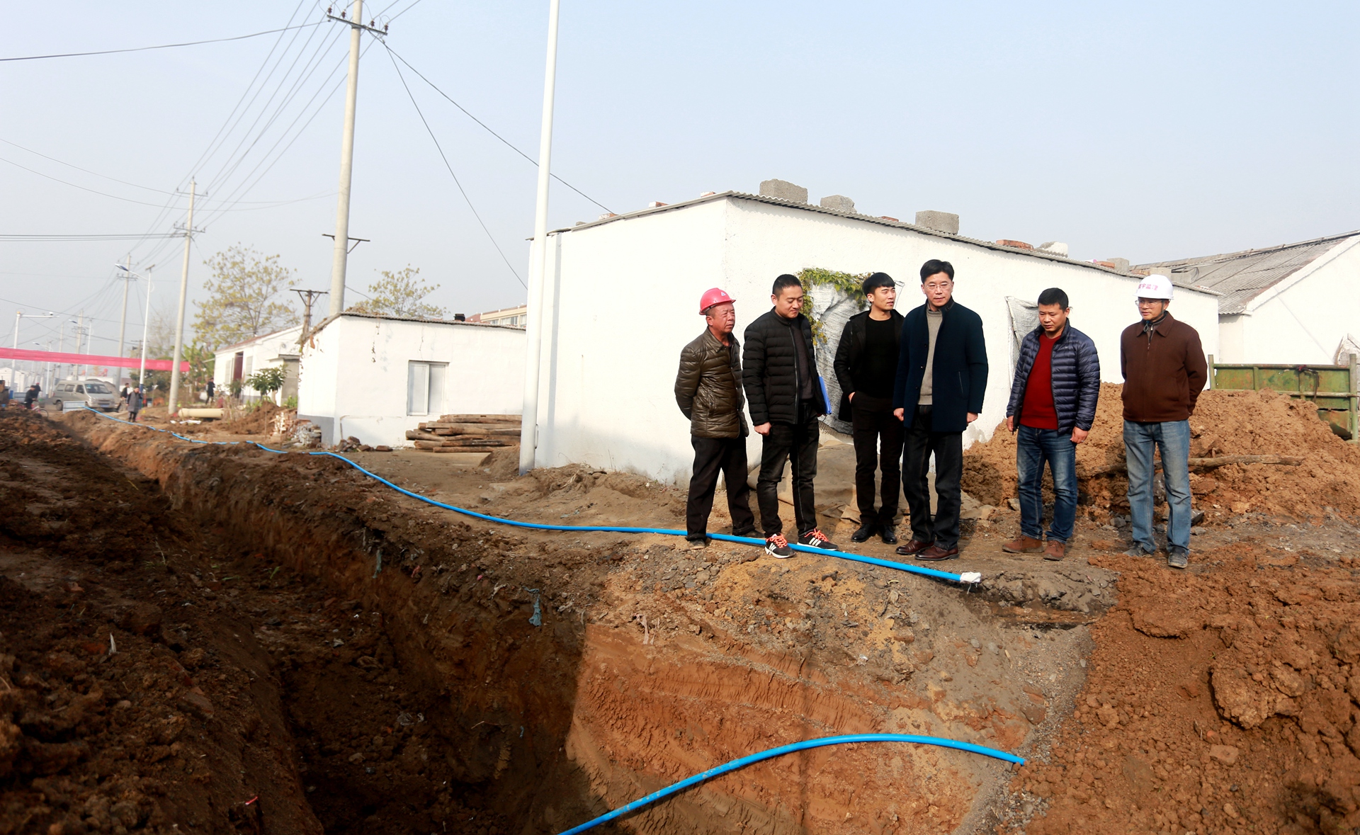 11月27日上午,市建投集團黨委委員、紀委書記王獻忠一行赴劉橋鎮火神廟村椅子圈莊督查推進給排水廁改工程。