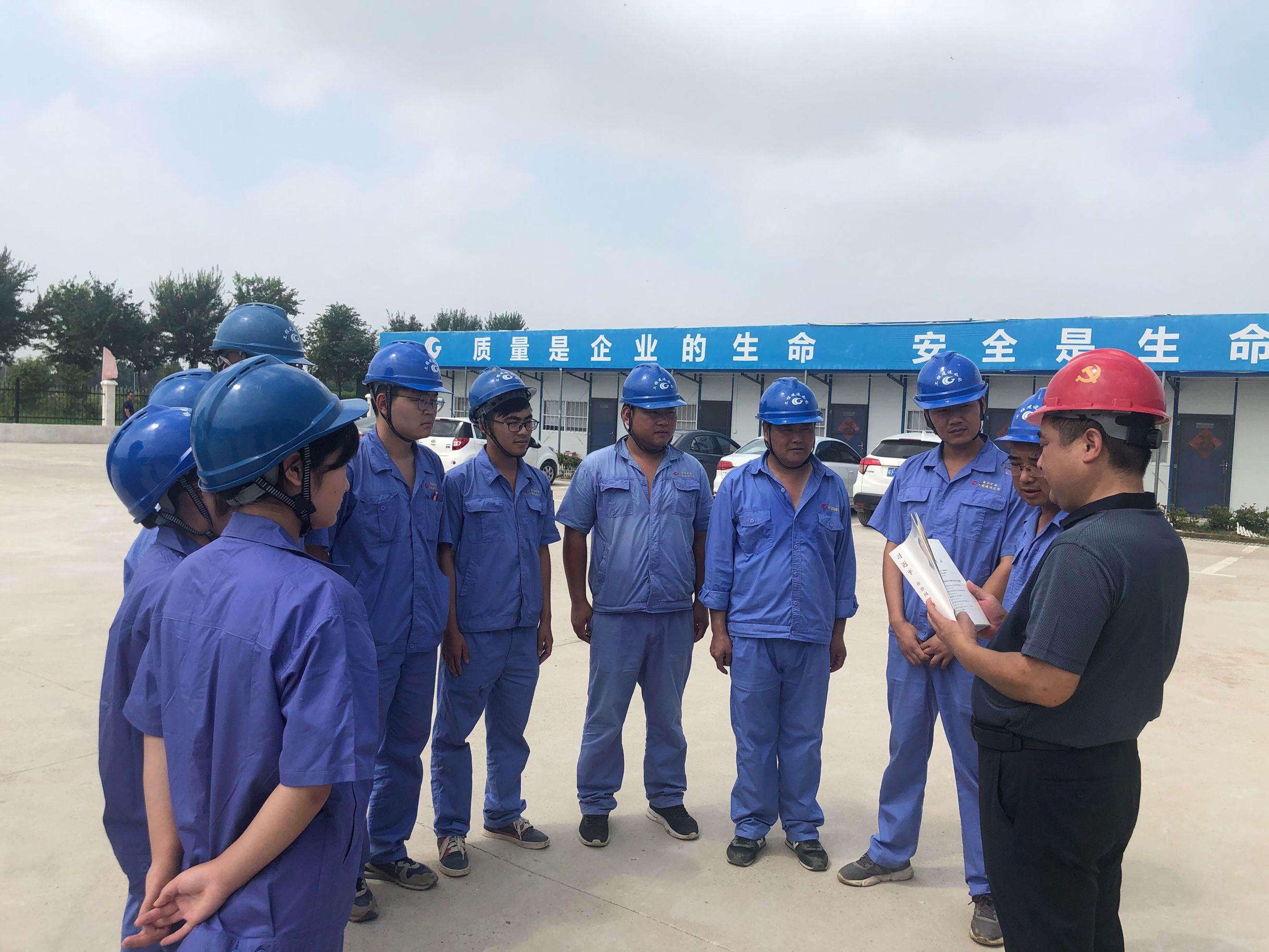 8月11日,房地產(chǎn)黨支部副書記童曉強(qiáng)頂著烈日、冒著高溫,在綠金新城項(xiàng)目部帶領(lǐng)黨員、干部、員工認(rèn)真學(xué)習(xí)《習(xí)近平談治國(guó)理政》第三卷。