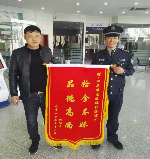 故事發(fā)生在2019年3月4日上午,陳寶生和往常一樣,在交行網(wǎng)點(diǎn)進(jìn)行執(zhí)勤,著突然發(fā)現(xiàn)營(yíng)業(yè)廳門內(nèi)側(cè)有一個(gè)紅色塑料袋,走近一看,里面物品整齊,來(lái)不及多想,老陳手握著塑料袋,下意識(shí)的環(huán)顧了四周,并沒(méi)看見(jiàn)失主,是誰(shuí)不小心把東西都丟在這兒了。鎮(zhèn)定一下之后立即上報(bào)中隊(duì),老陳想包里會(huì)不會(huì)有一些證件之類的東西,或許能找到一些失主的線索也不一定。就和班長(zhǎng)一起小心翼翼的打開了袋子,發(fā)現(xiàn)里面都是些合同文件和借條、憑證,價(jià)值等額有200多萬(wàn)。老陳先把包妥善放好,然后通過(guò)調(diào)取監(jiān)控、在網(wǎng)點(diǎn)門口留下信息等方式,積極主動(dòng)尋找失主。功夫不負(fù)有心人終于在下班前與失主倪先生取得聯(lián)系,認(rèn)領(lǐng)物品時(shí)倪先生激動(dòng)的熱淚盈眶,上前緊緊握住了陳寶生的雙手,說(shuō):“謝謝……真是太感謝了!我找了好幾天,都是一無(wú)所獲,如果這個(gè)包丟失,將造成200多萬(wàn)元的損失,沒(méi)想到遇到了您,讓我說(shuō)什么好啊!馬上拿出一疊現(xiàn)金送給老陳”
