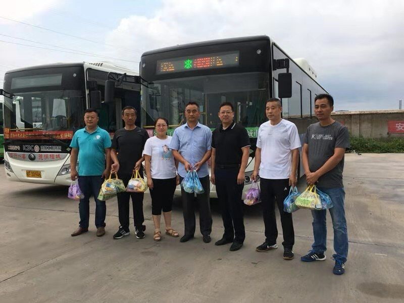 慰問小組送來了花露水、毛巾、肥皂、純凈水等防暑降溫物品,叮囑大家在做好一線服務的同時,一定要注意防暑降溫、保重身體,以最佳的精神狀態為廣大市民乘客提供優質的公交出行服務。張總還詳細詢問公交站場防暑降溫具體措施和一線員工工作生活情況,要求公交二公司切實做好各項防暑降溫工作,加強后勤保障措施,全力為一線員工創造一個舒適稱心的工作環境。